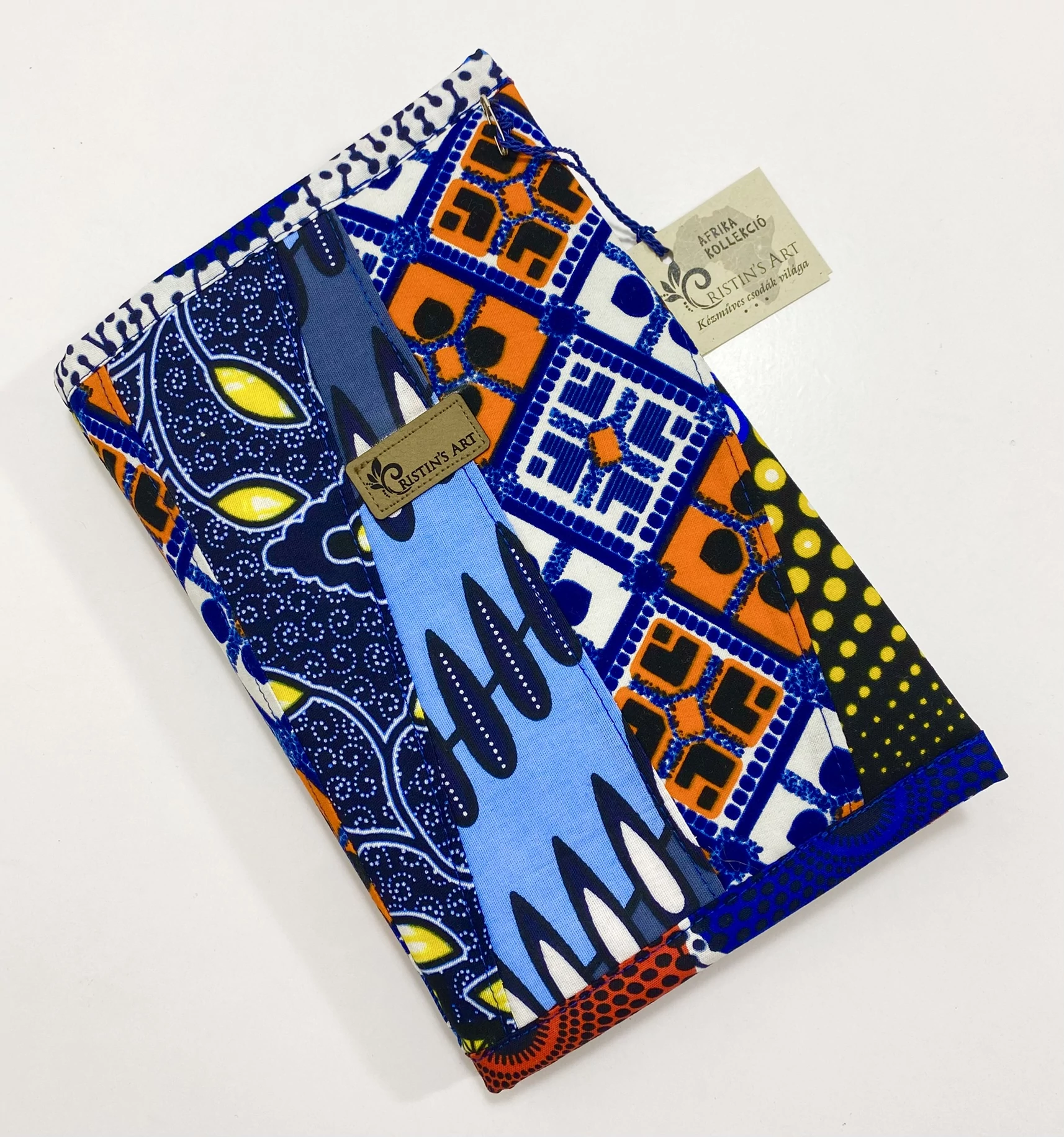 Ehhez a noteszborítóhoz az afrikai anyagok maradékait használtam fel, ügyelve arra, hogy a minták és a színek harmonizáljanak egymással!