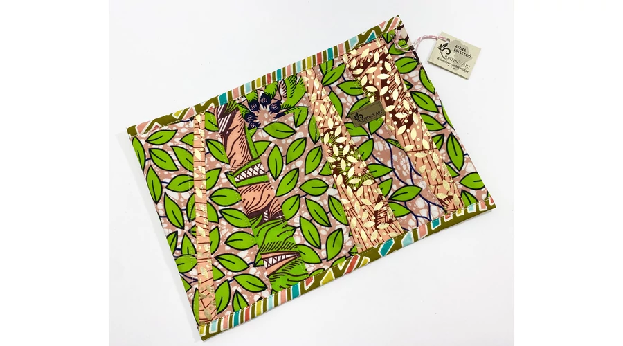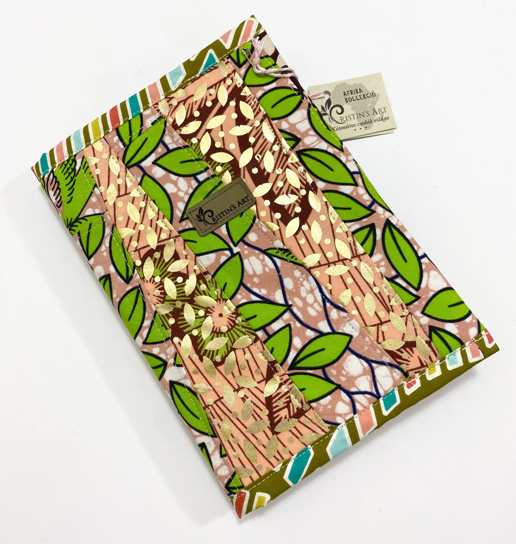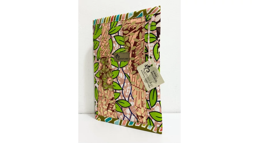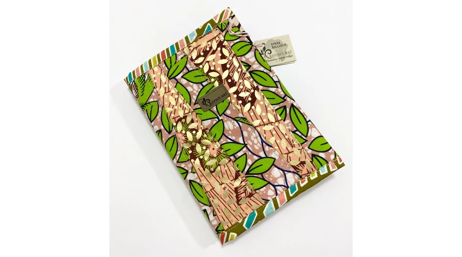 Ehhez a noteszborítóhoz az afrikai anyagok maradékait használtam fel, ügyelve arra, hogy a minták és a színek harmonizáljanak egymással!