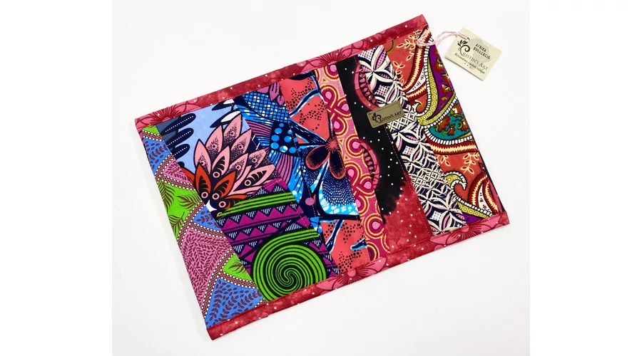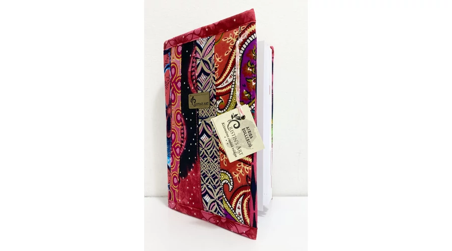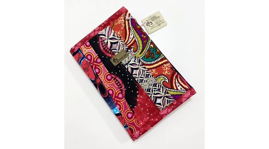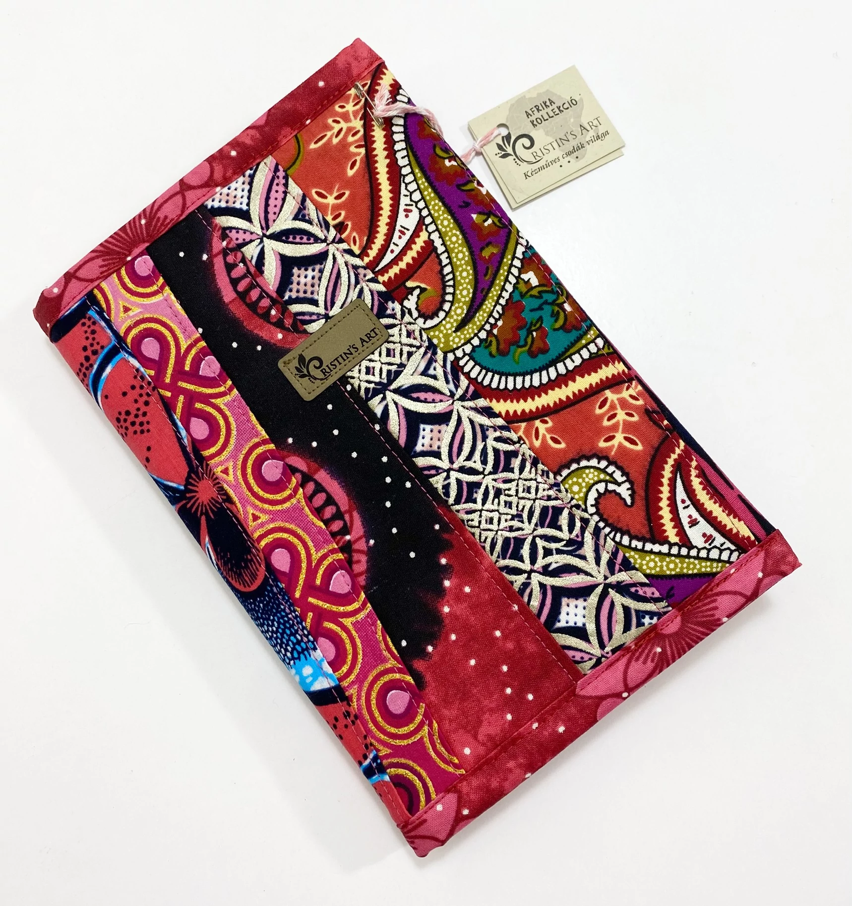 Ehhez a noteszborítóhoz az afrikai anyagok maradékait használtam fel, ügyelve arra, hogy a minták és a színek harmonizáljanak egymással!