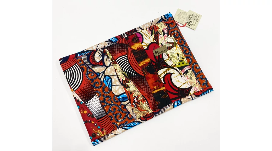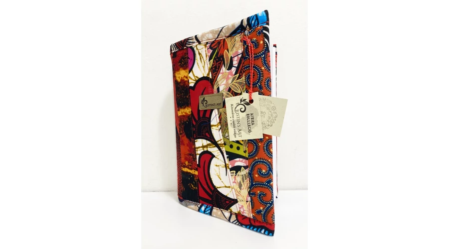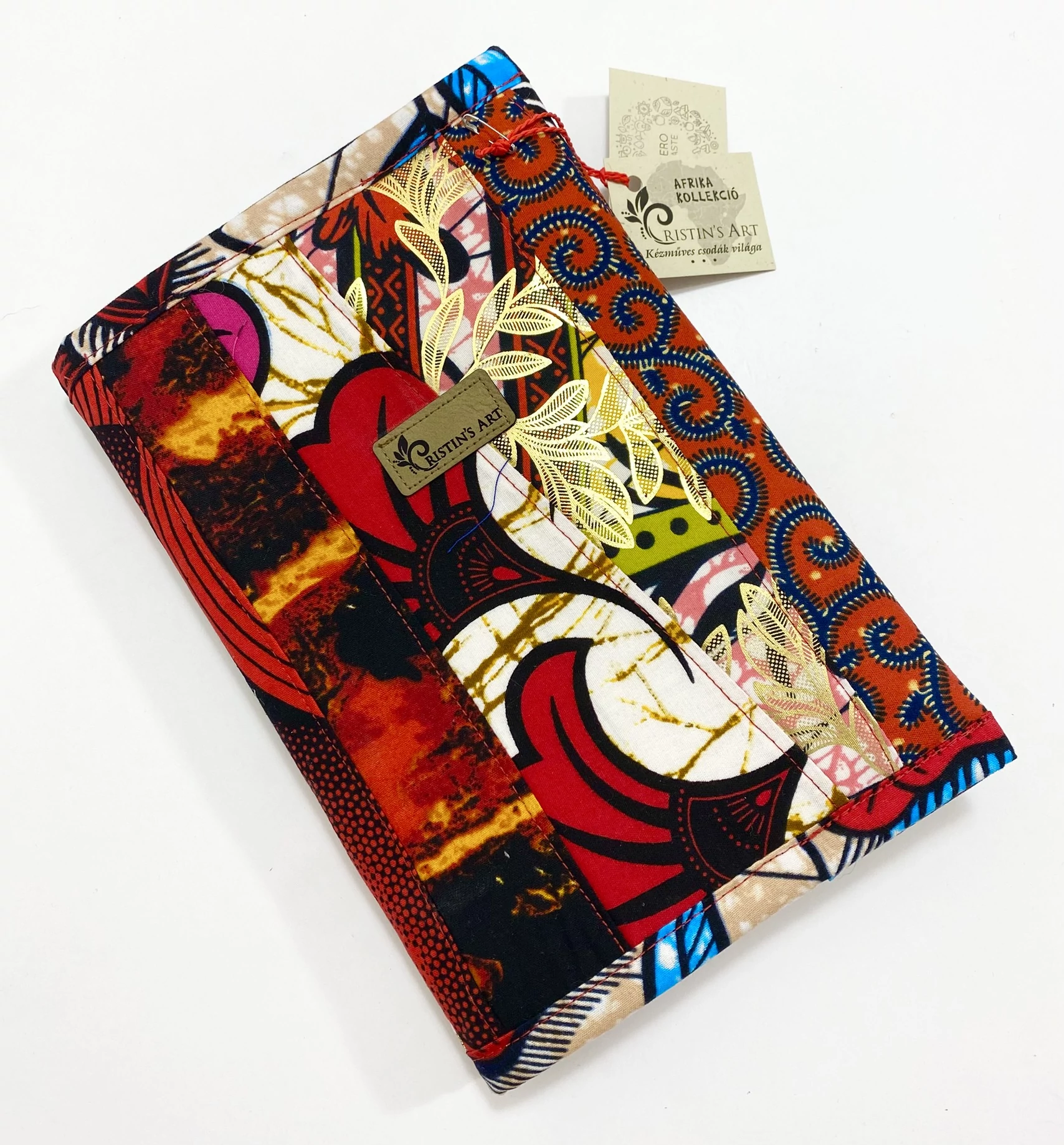 Ehhez a noteszborítóhoz az afrikai anyagok maradékait használtam fel, ügyelve arra, hogy a minták és a színek harmonizáljanak egymással!
