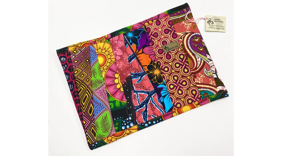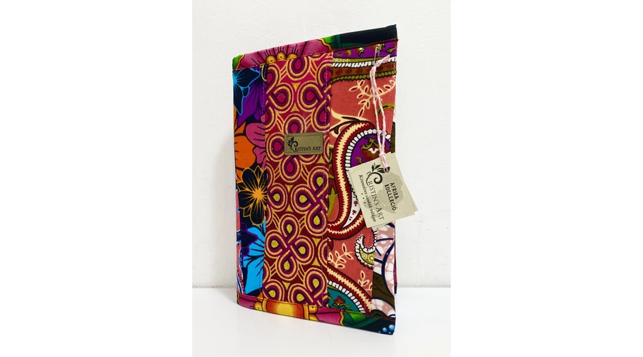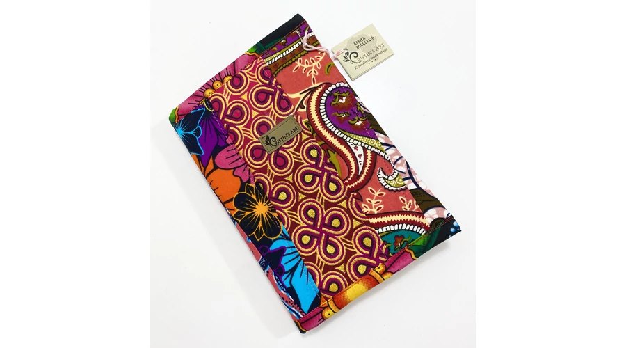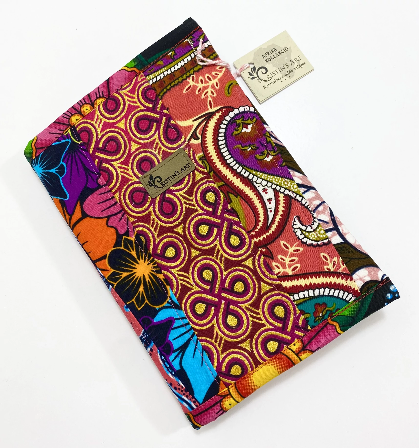 Ehhez a noteszborítóhoz az afrikai anyagok maradékait használtam fel, ügyelve arra, hogy a minták és a színek harmonizáljanak egymással!