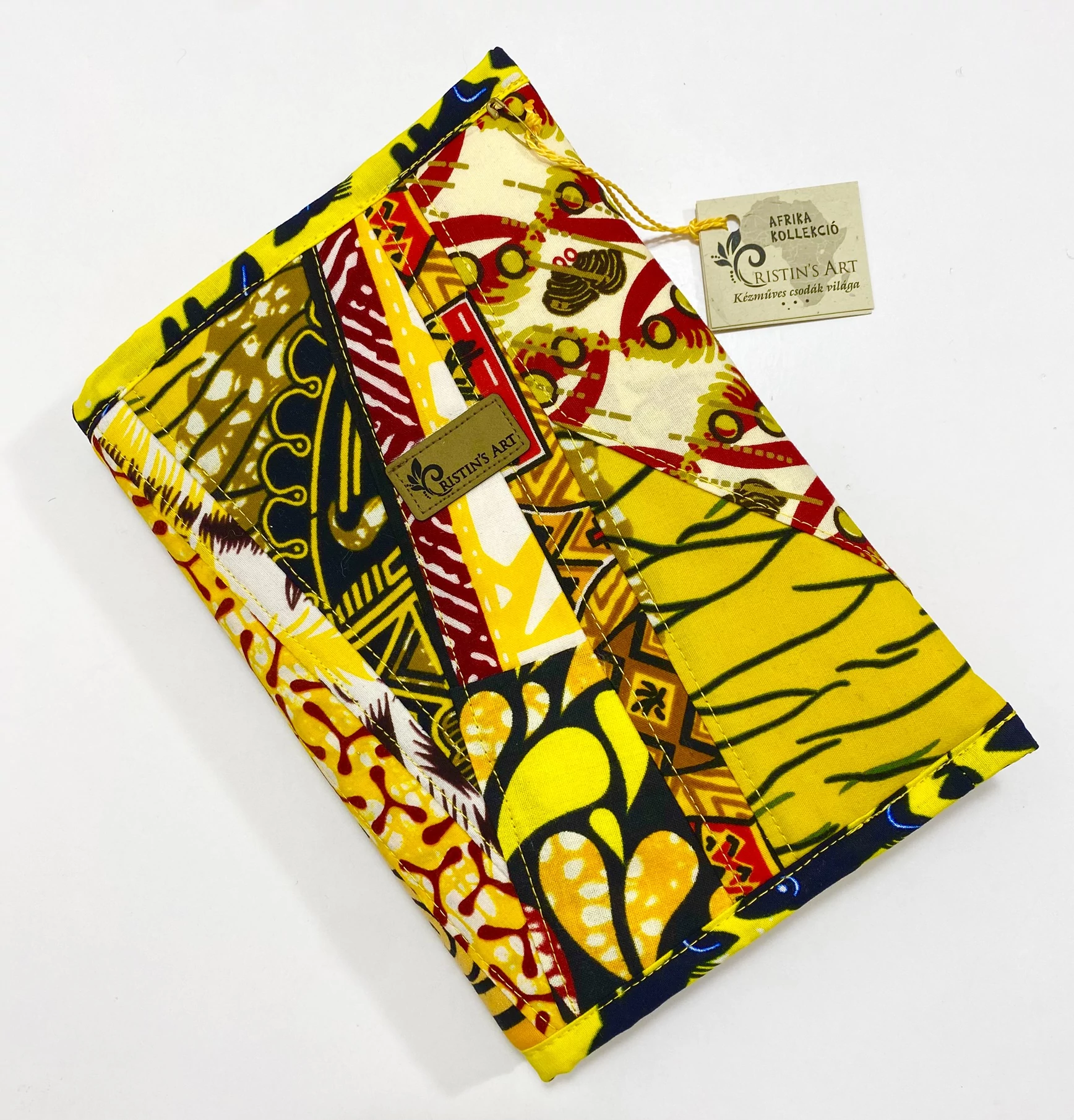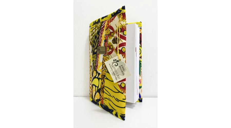 Ehhez a noteszborítóhoz az afrikai anyagok maradékait használtam fel, ügyelve arra, hogy a minták és a színek harmonizáljanak egymással!