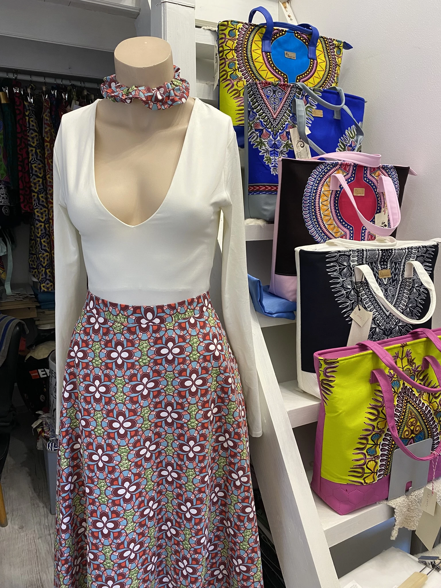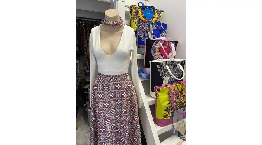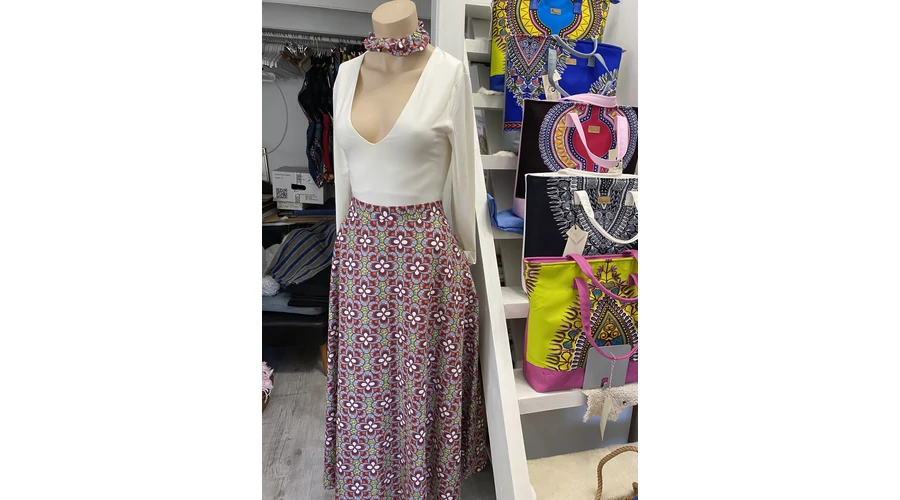 Afrikai virág mintás maxi szoknya ajándék hajgumival