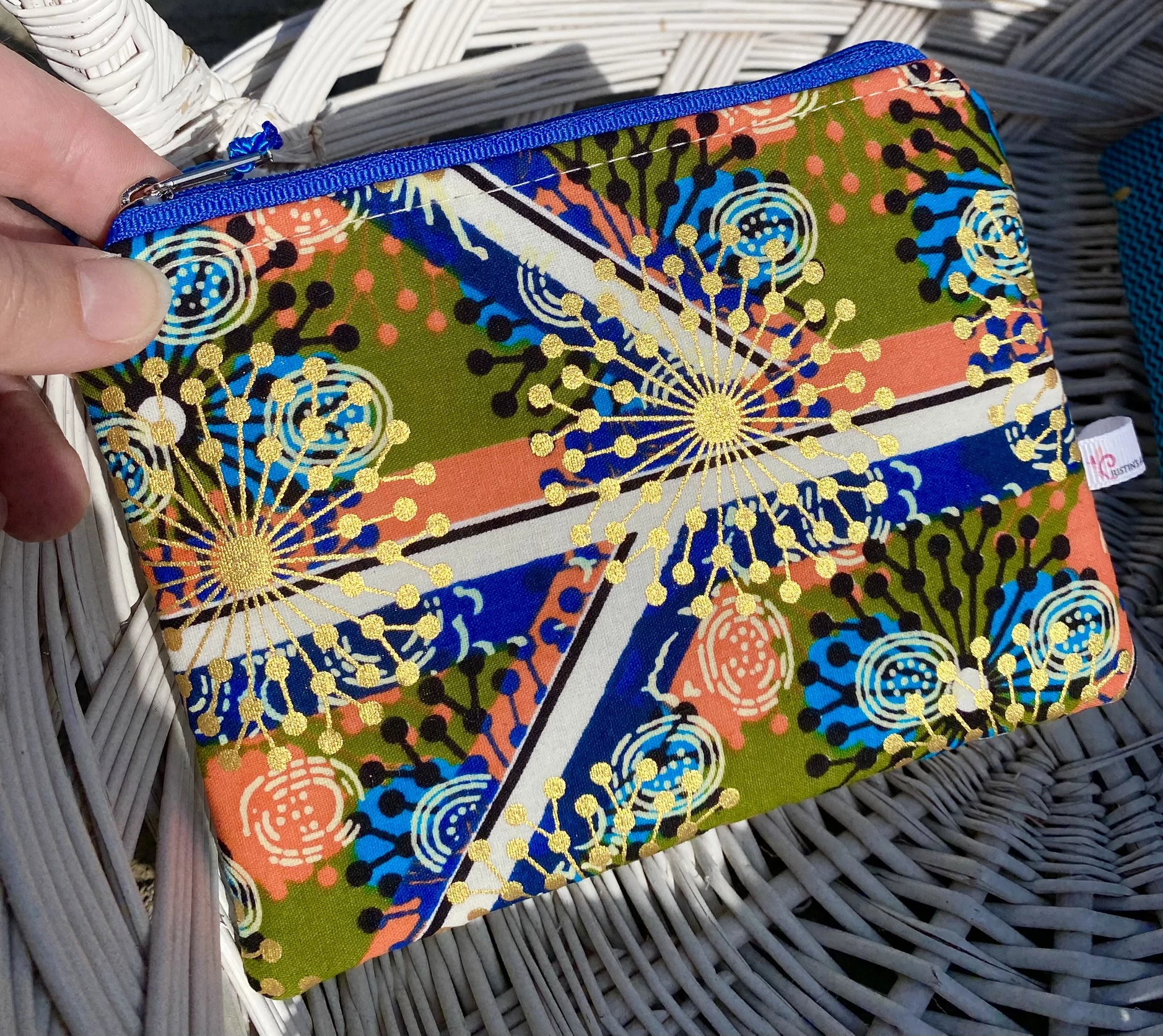 Kisebb méretű neszeszer készült ebből a csodálatos arany nyomatos, virág mintás afrikai anyagból, mindennapi használatra!