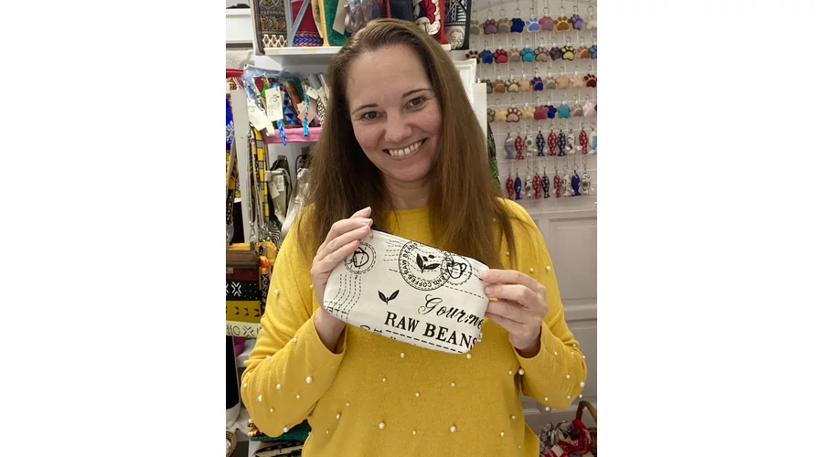 Bézs alapon fekete Coffee feliratos közepes méretű neszeszer