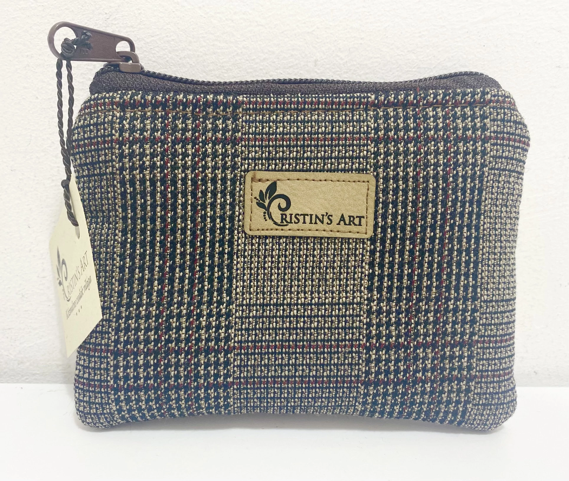 Elegáns, egyedi, letisztult, stílusos kis méretű neszeszer barna kockás szövetből. A hátulja sötétbarna textilbőr, így még elegánsabb az összhatás.