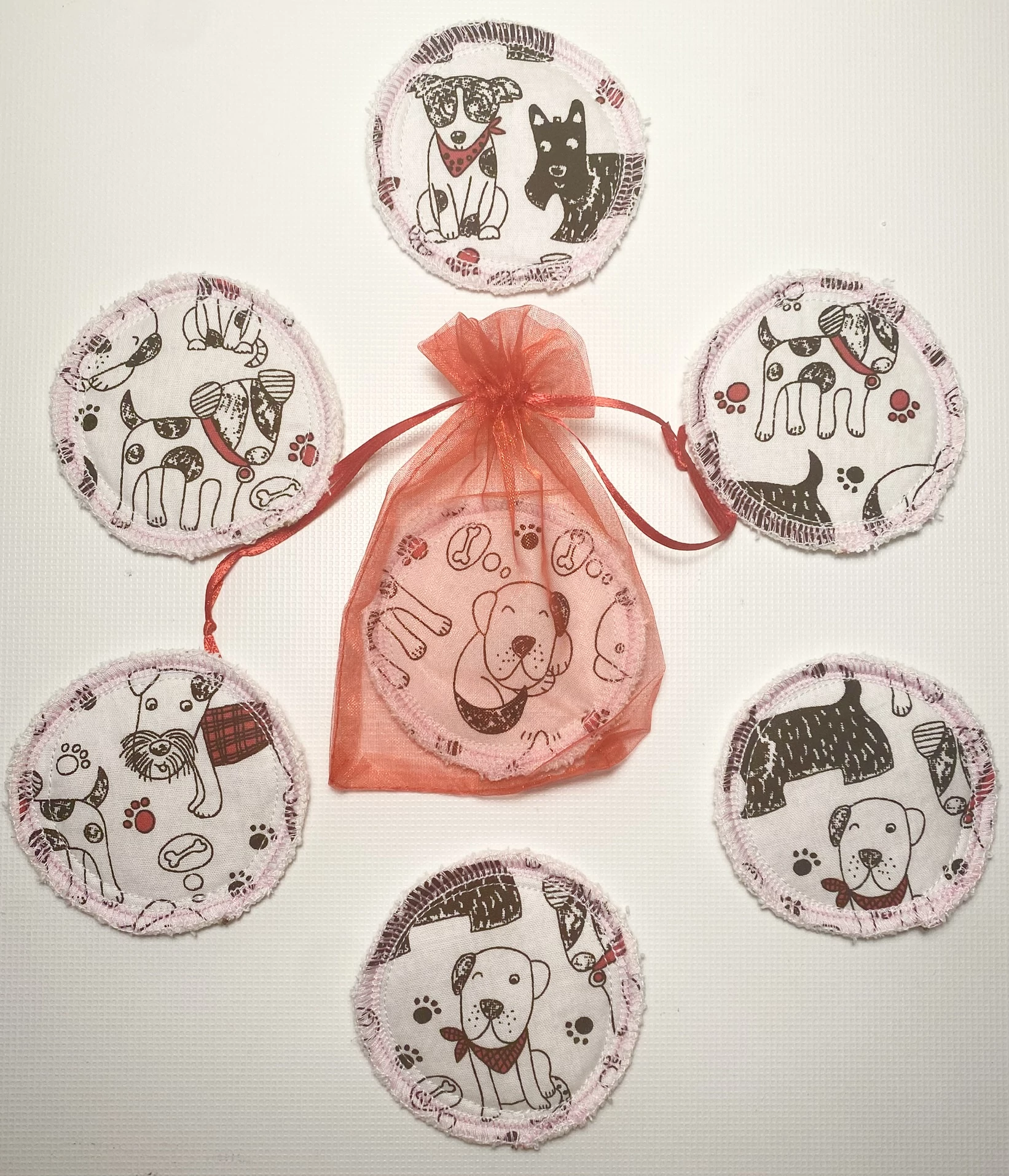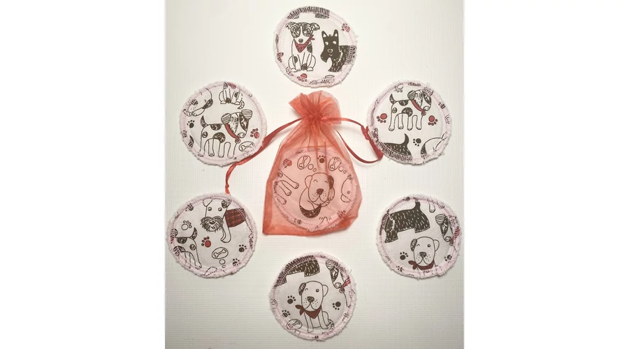 Fekete-piros kutyusos mosható arctisztító korongok tüll tasakban