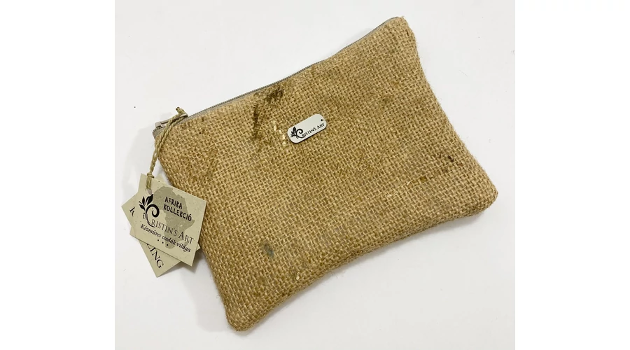 Kávé,- és kakaóbab zsákjából készült kis méretű neszeszer
