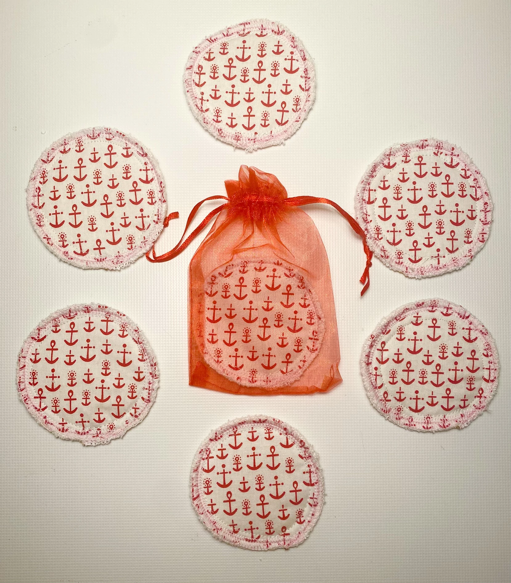 Kis piros horgonyos arctisztító korongok tüll tasakban