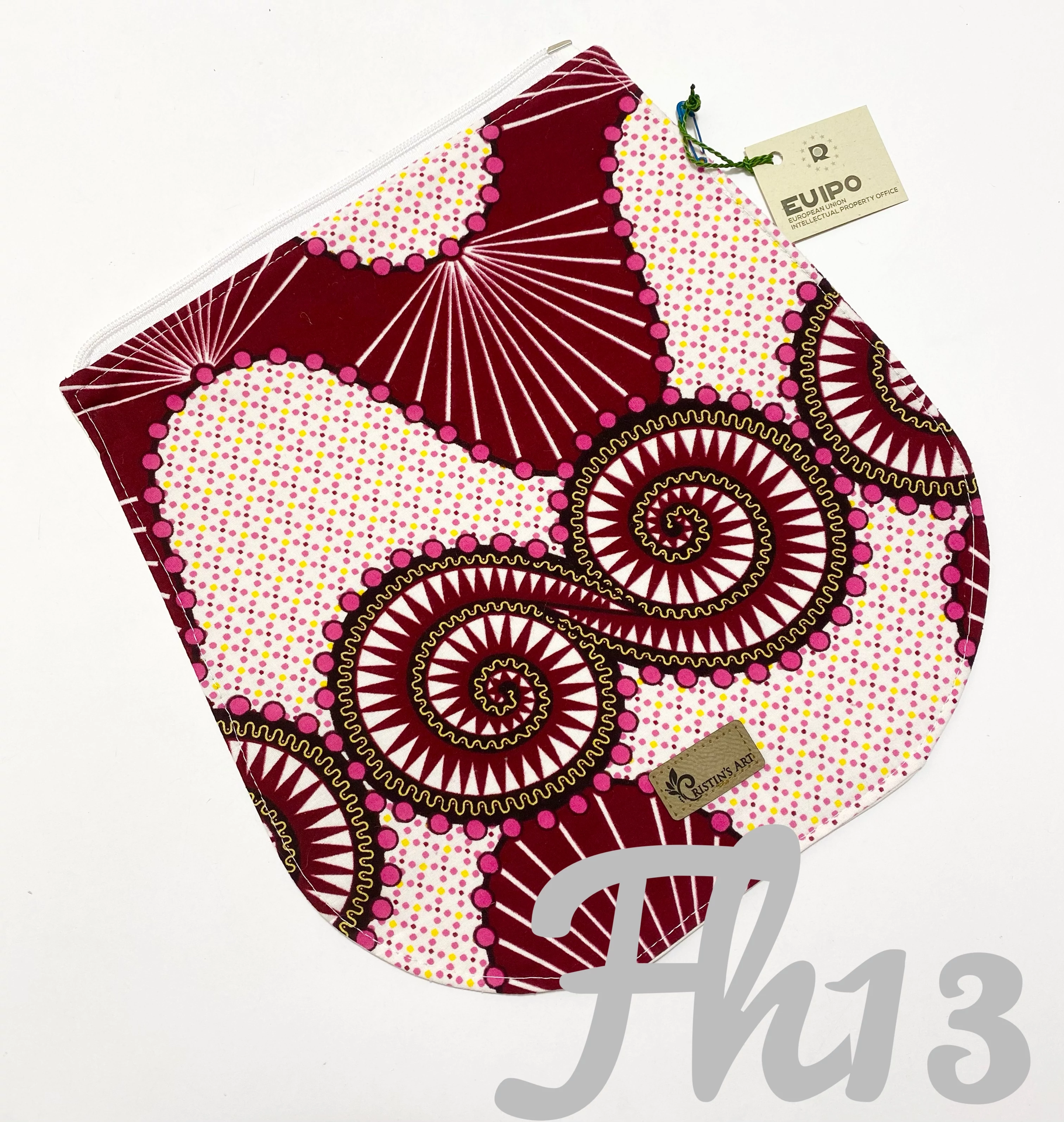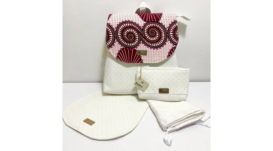 Pink csigavonal mintás afrikai pamutvászonból készítettem, melynek alja fehér textilbőr, így elsősorban a fehér hátitáska szetthez ajánlom!