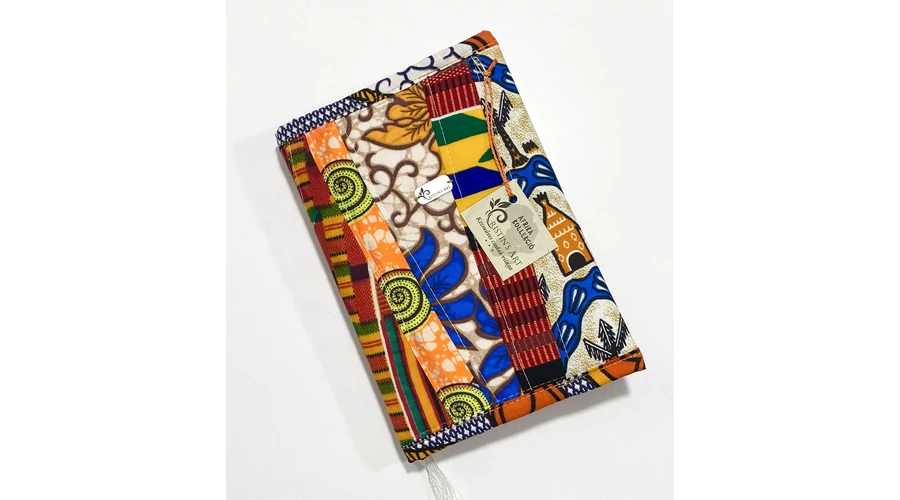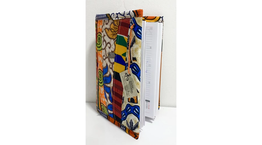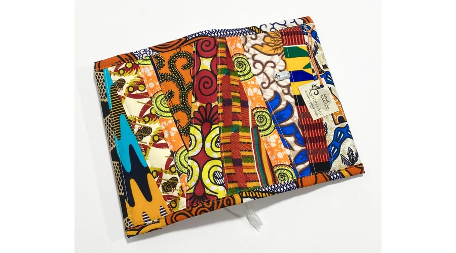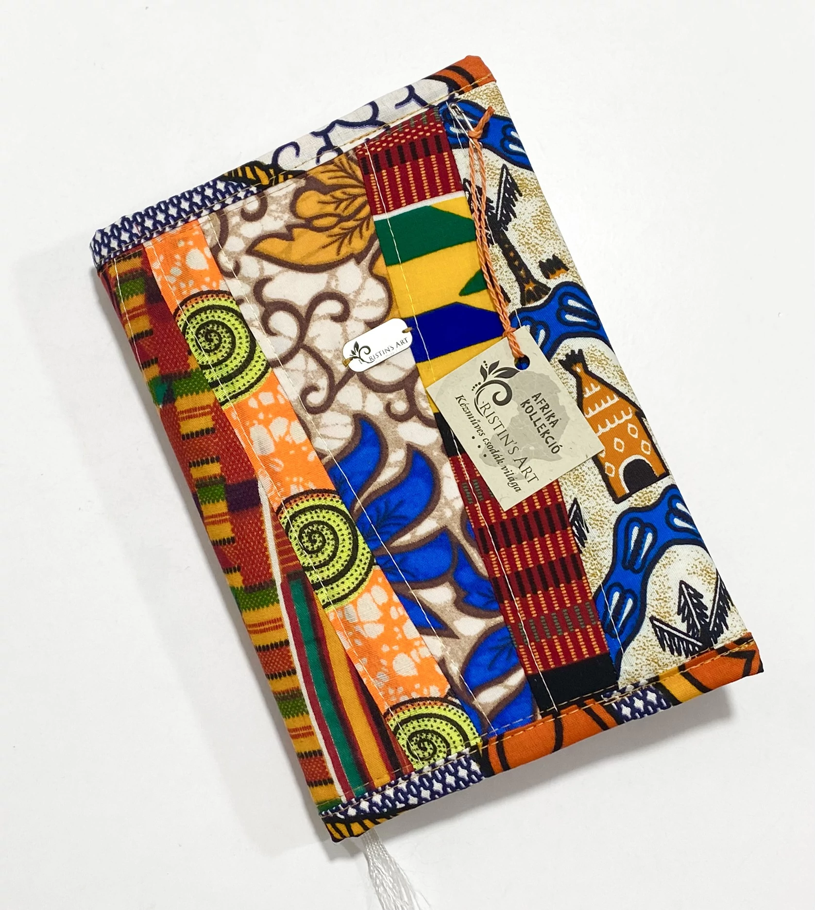 Ehhez a noteszborítóhoz az afrikai anyagok maradékait használtam fel, ügyelve arra, hogy a minták és a színek harmonizáljanak egymással!