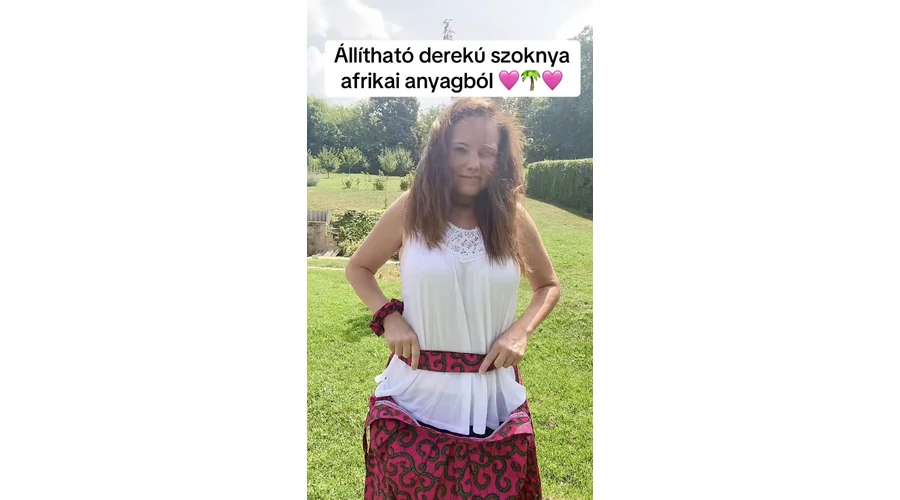 Állítható derekú szoknya pink kacska mintás afrikai anyagból ajándék hajgumival