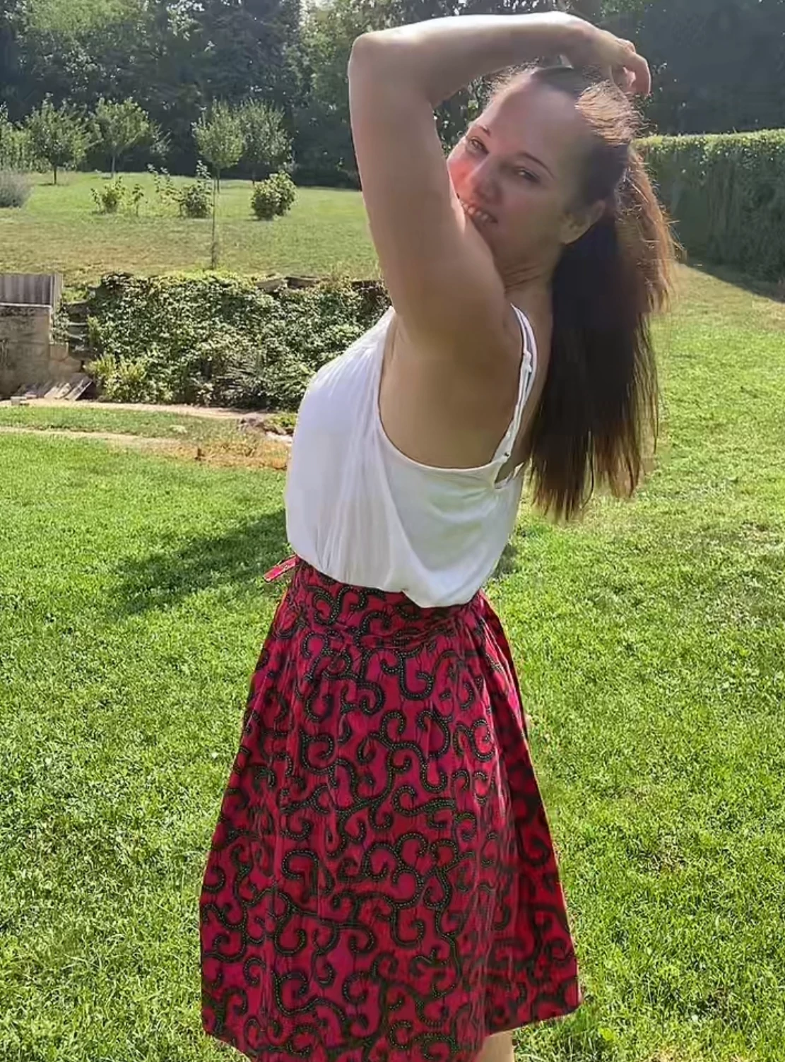 Mivel a szoknya anyaga 100% pamutvászon és nincs bélelve, ezért harisnyával viselve tapadhat a harisnyához. Ennek elkerülése érdekében érdemes egy selyem alsószoknyát alávenni vagy egy tapadásmentes harisnyával hordani!