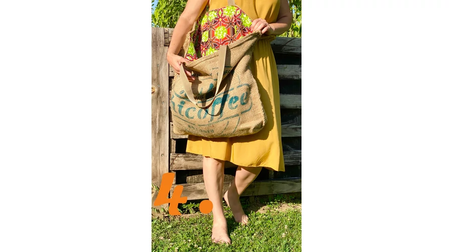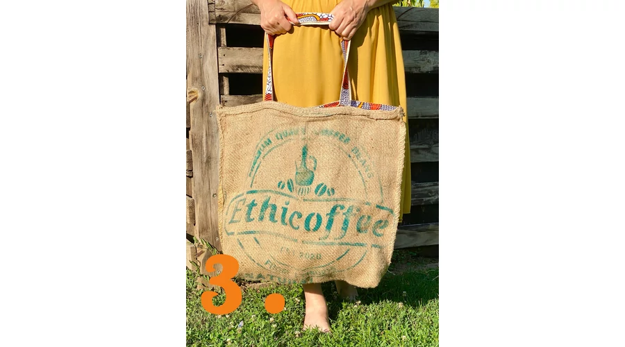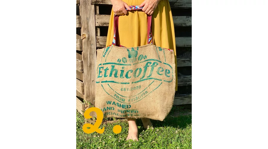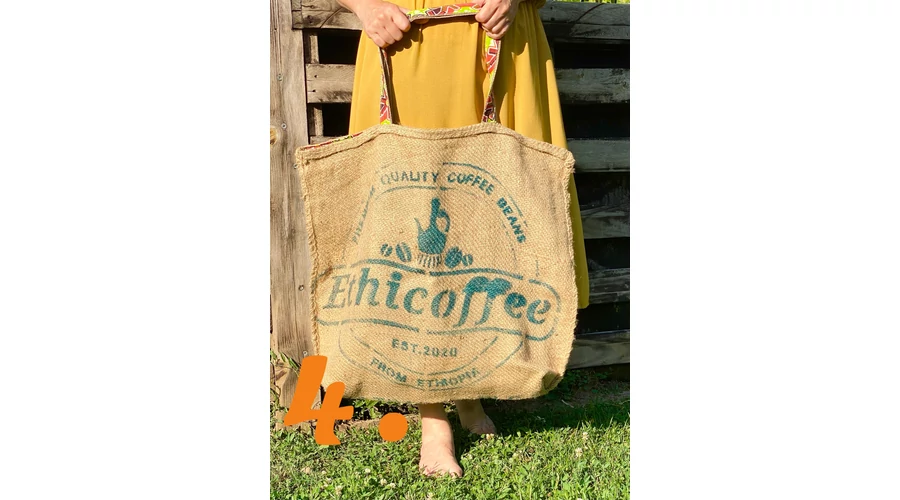 Etiópiai kávébab zsákjából készült nagy méretű bevásárló táska