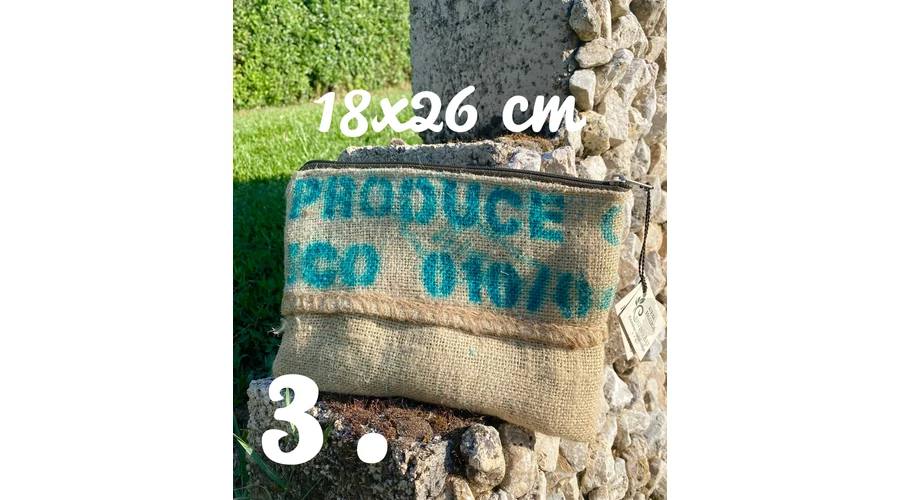 Kávé,- és kakaóbab zsákokból készült neszeszer
