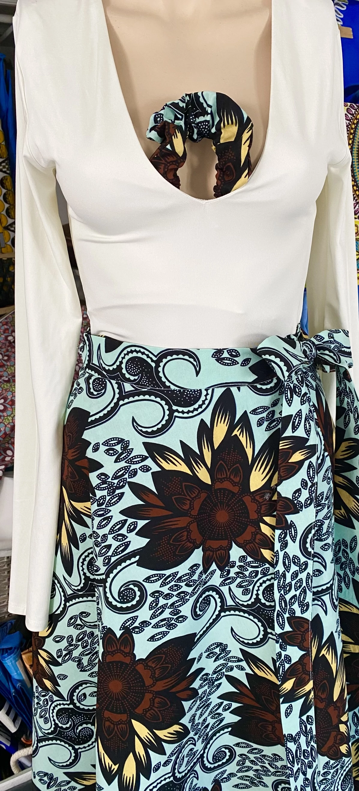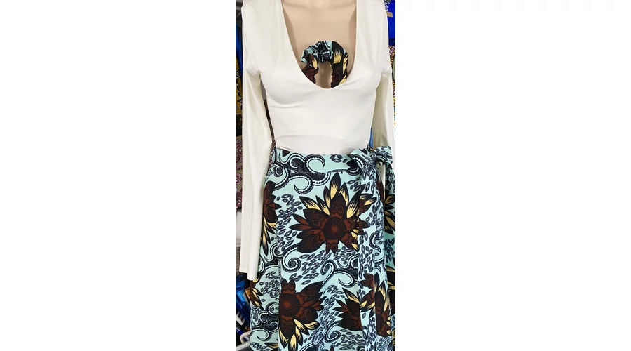 A menta zöld alapon nagy barna virág mintás anyag egyenesen Elefántcsontpartról érkezett hozzá!
