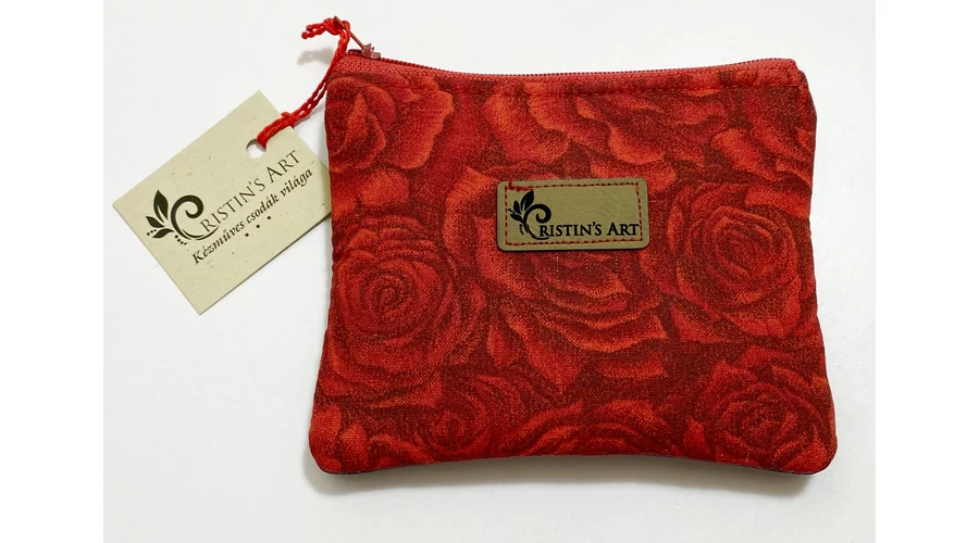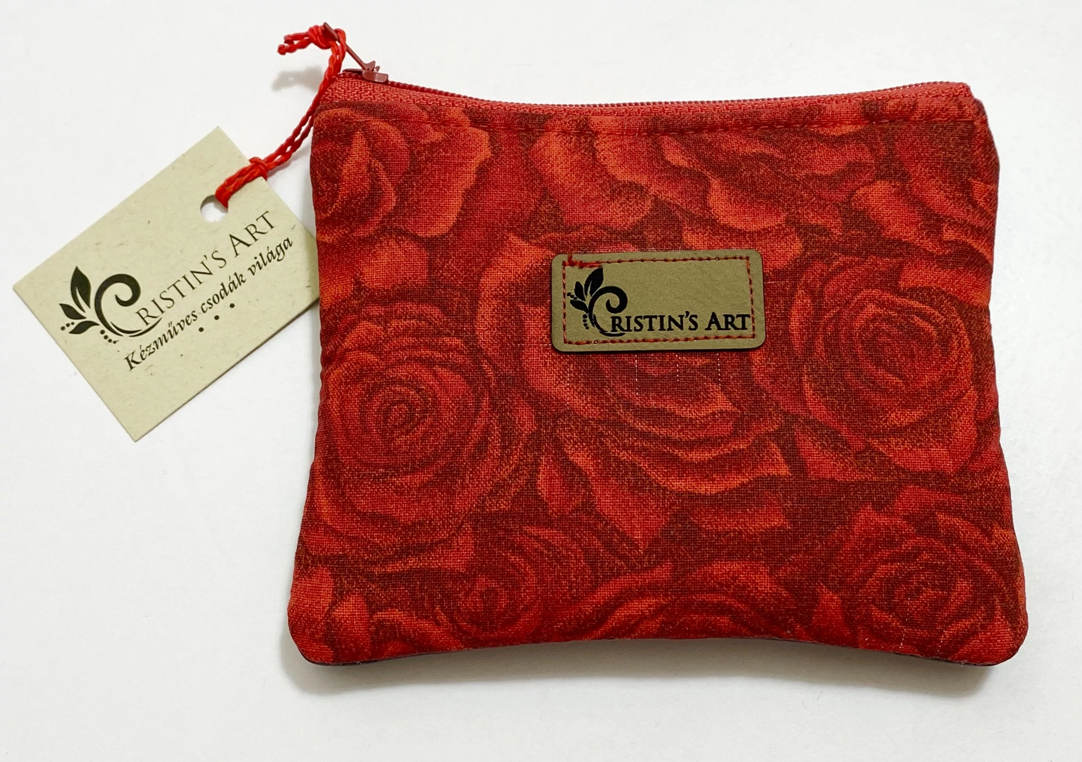 Németországból származó kiváló minőségű piros rózsás pamutvászonból és egy steppelt, puha soft textilbőrből készítettem ezt a kis méretű neszeszert.